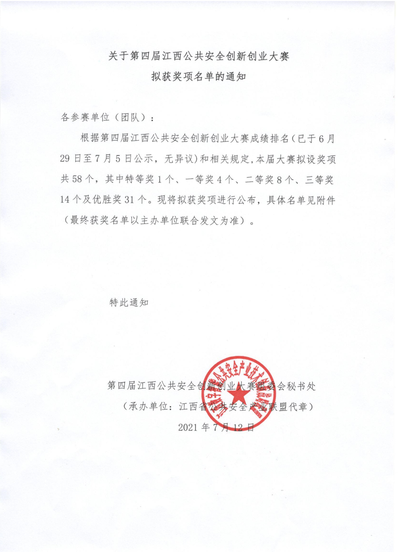 近期,我公司自主研發(fā)且擁有獨立知識產(chǎn)權(quán)的《公共衛(wèi)生應(yīng)急作業(yè)管理平臺.EOC》軟件平臺在第四屆江西公共安全創(chuàng)新創(chuàng)業(yè)大賽傳出捷報,榮獲“第四屆江西公共安全創(chuàng)新創(chuàng)業(yè)大賽”優(yōu)勝獎。